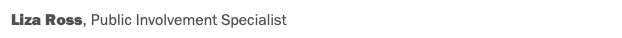We are transportation and environmental planners, public outreach specialists, marketing specialists and communicators, who together have over 250 years of combined experience. We have expert skills in environmental studies, group facilitation, marketing, planning, event coordination, public speaking, media relations, graphic design, website content and development, photography, social media, language translation and data base management.